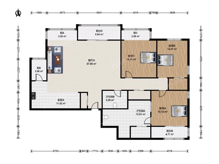 3室2厅 光彩国际公寓