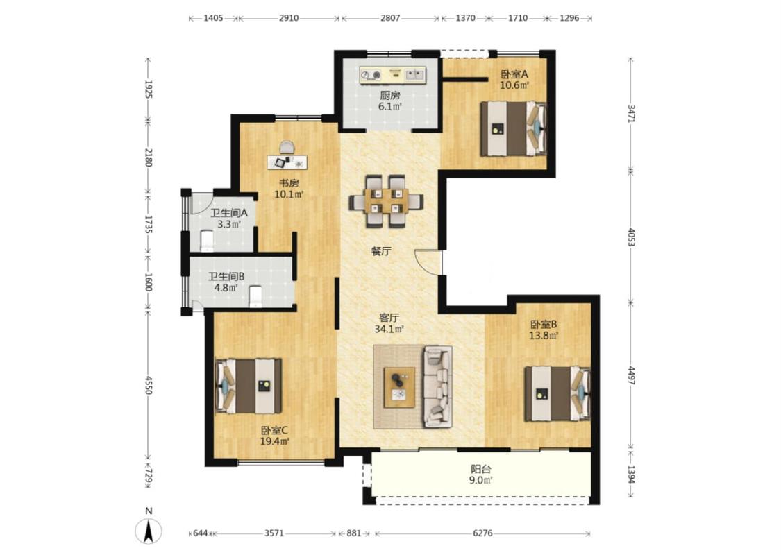 4室2厅 绿城柳岸晓风
