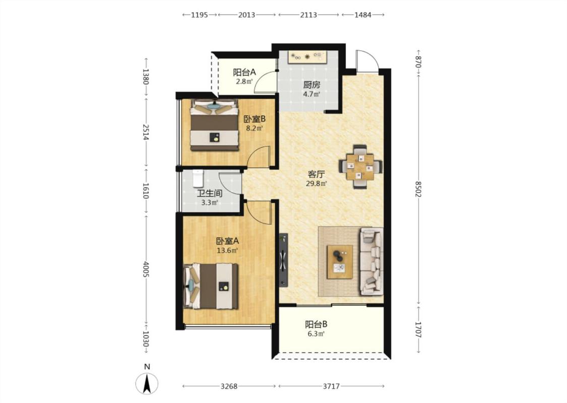 2室2厅 嘉盛名都