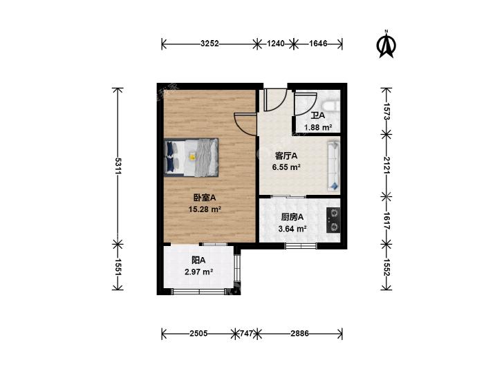 1室1厅 琉璃井东街