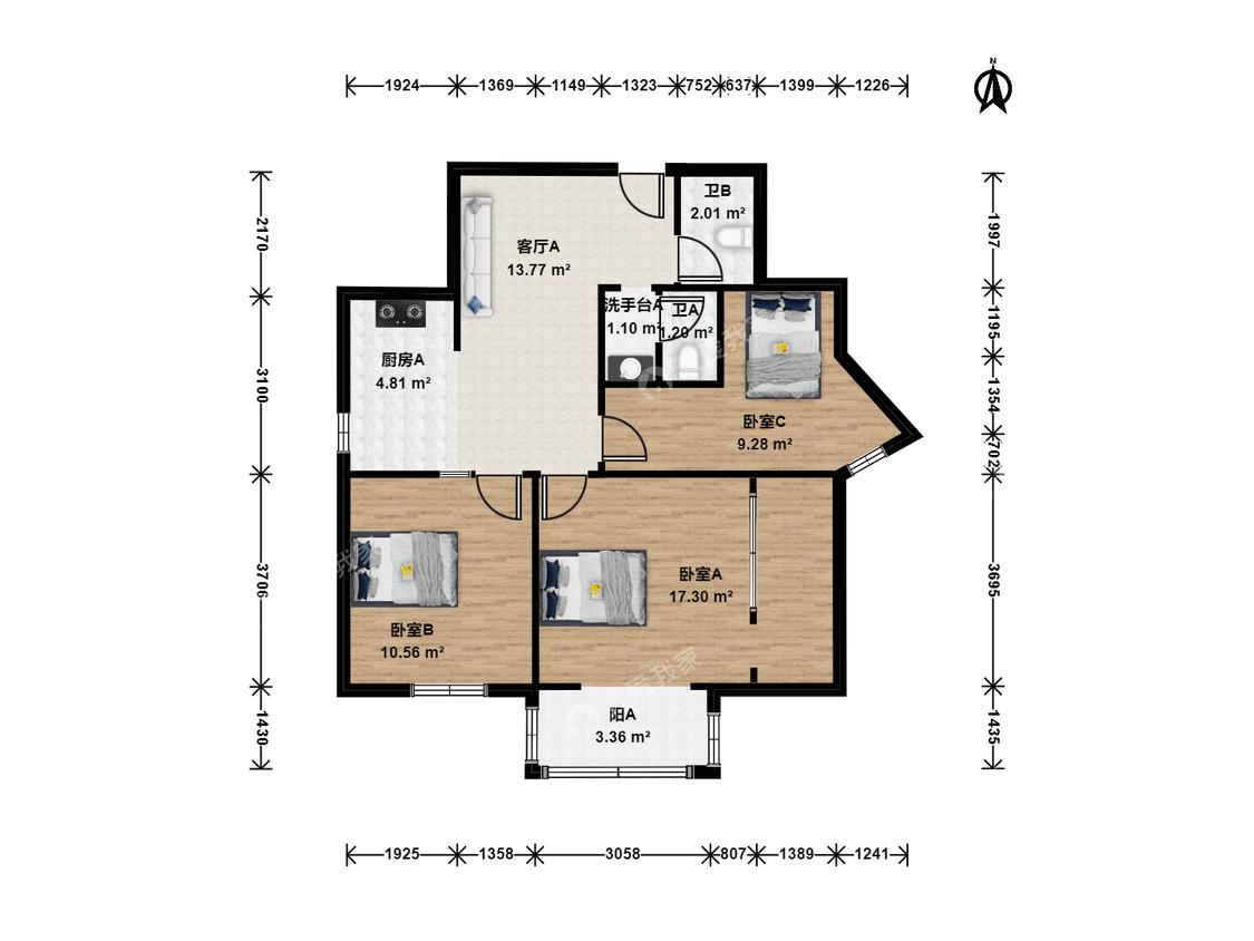 3室1厅 八里庄北里