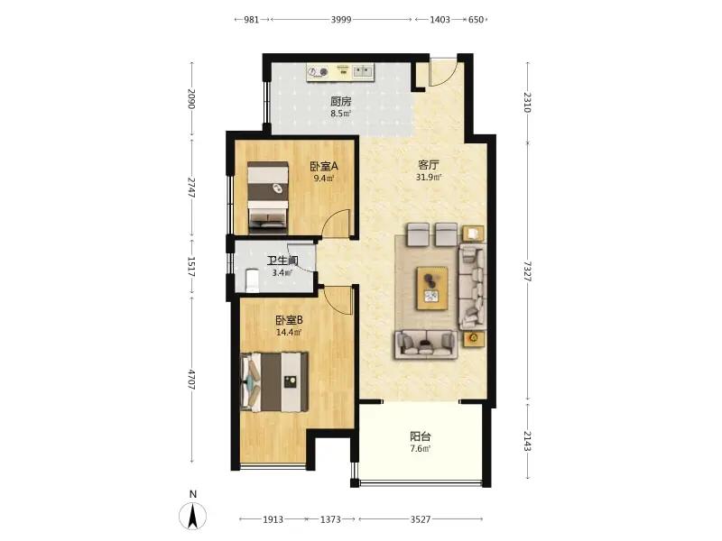 2室2厅 武汉华侨城(三期)