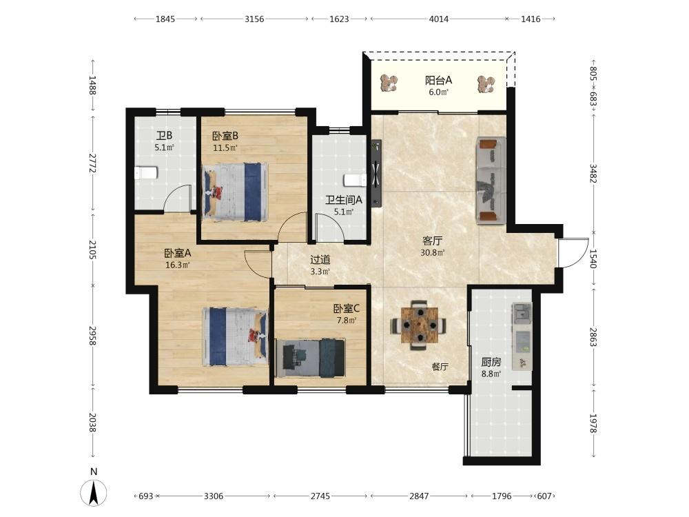 3室2厅 锦地翰城