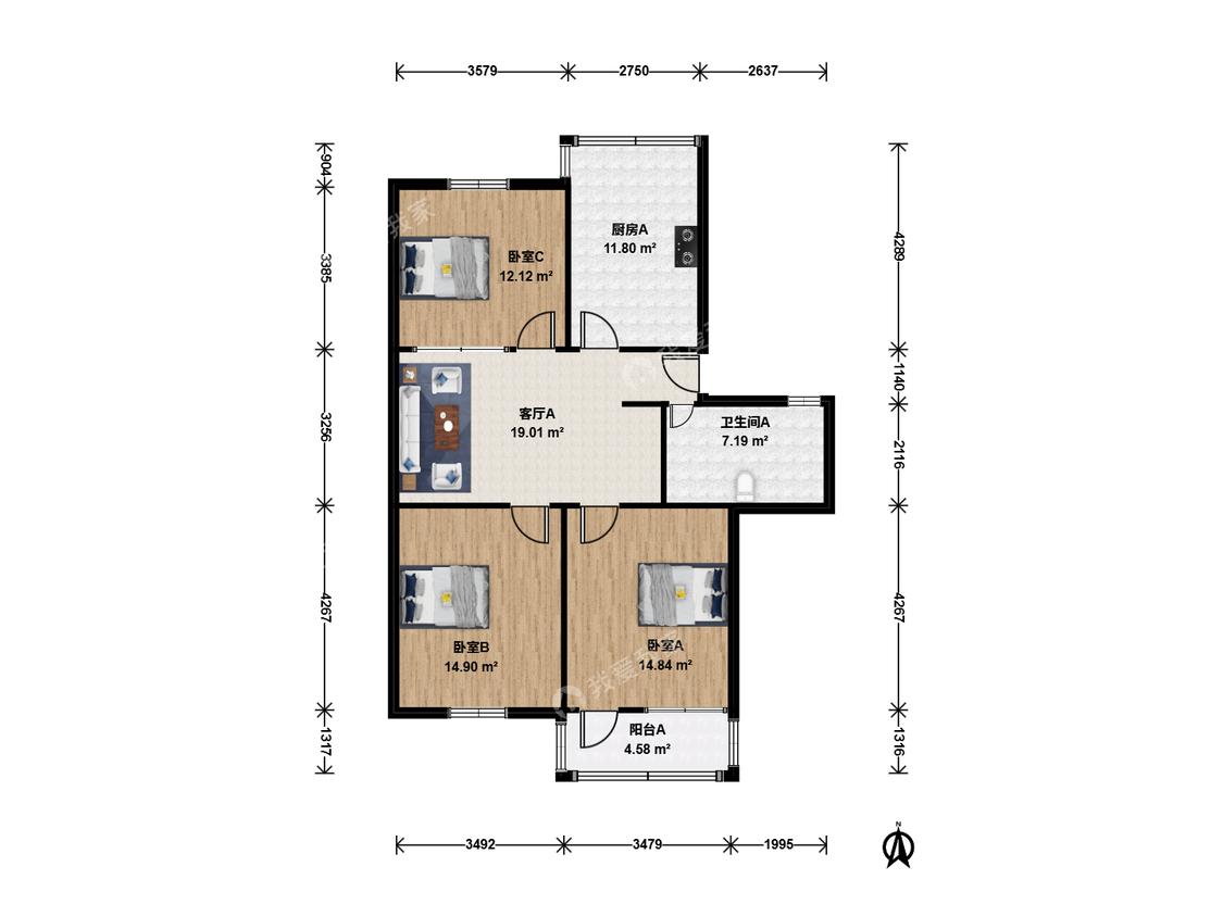 3室1厅 中军新村