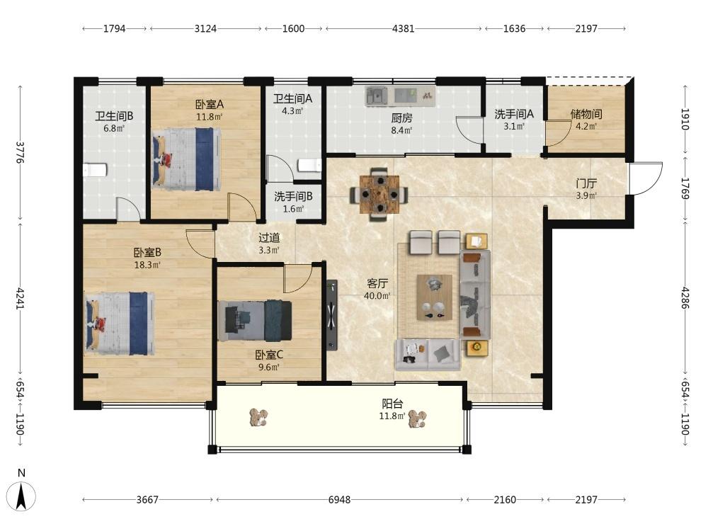 3室2厅 仁恒海棠公园(二期)