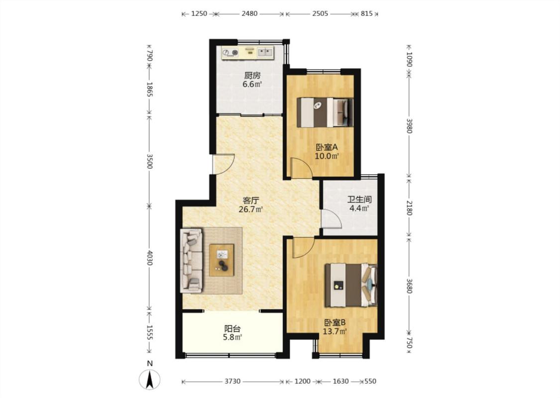 2室1厅 华美风景园(二期C区)