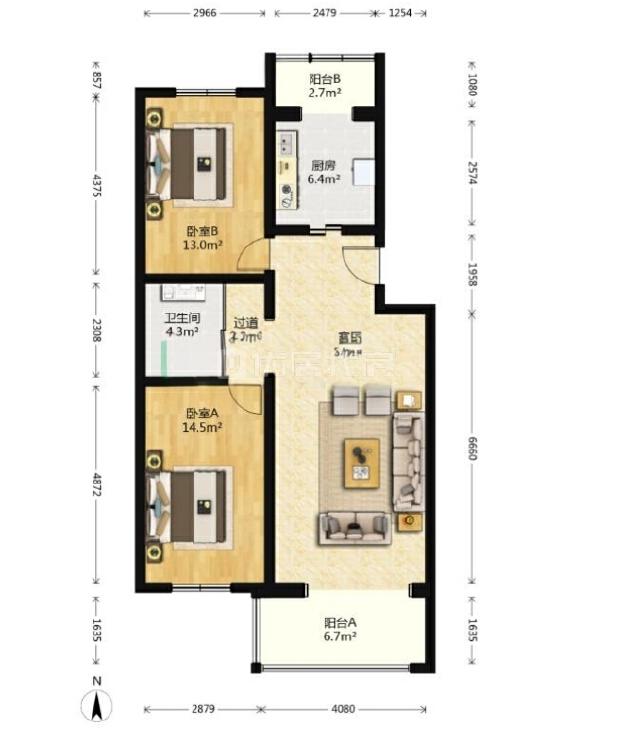 2室1厅 天赐良园(北区)