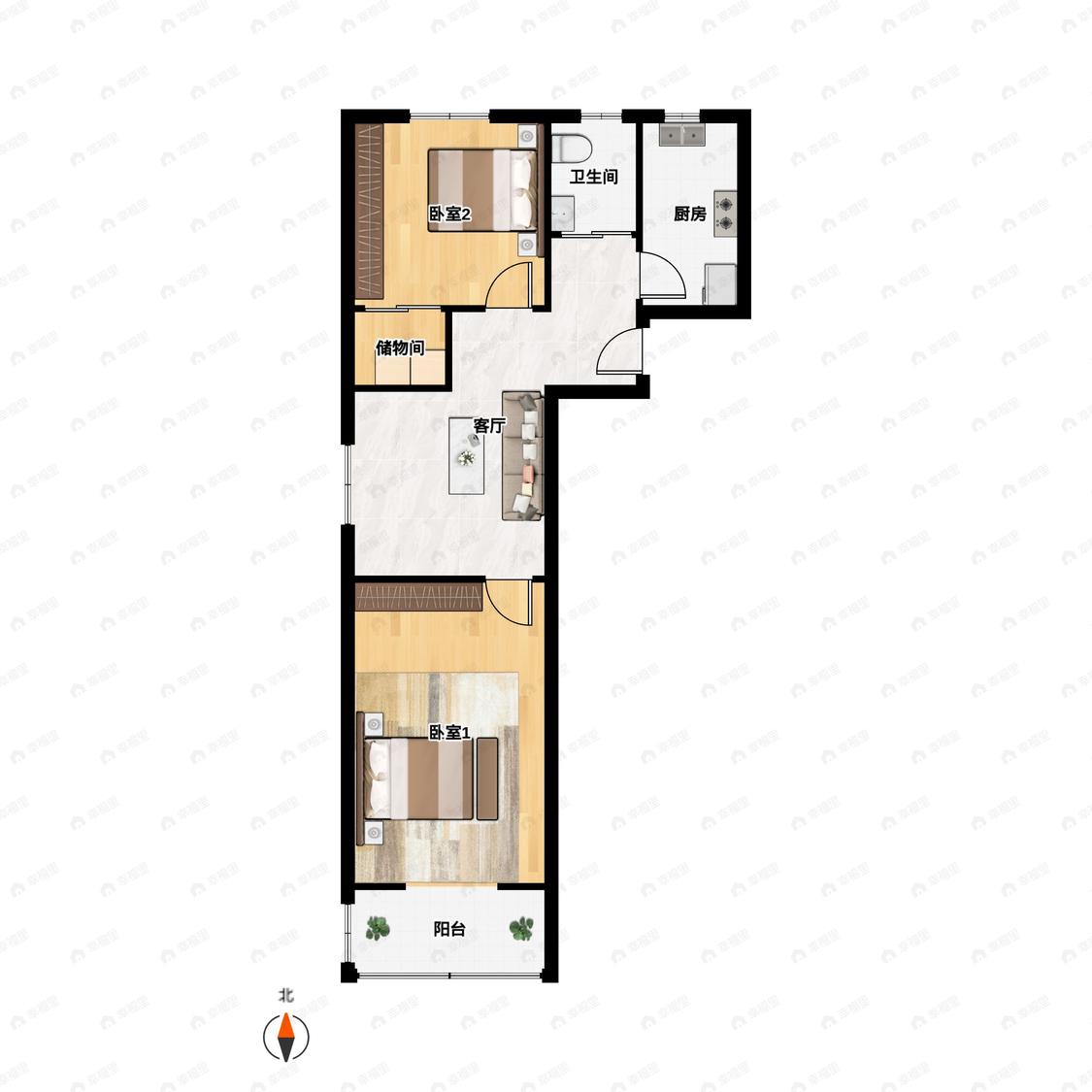 2室1厅 琥珀北村