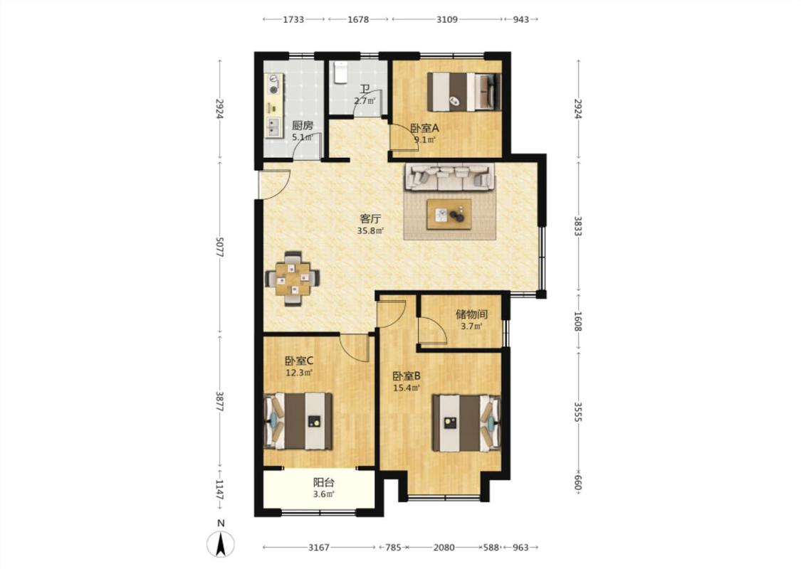 3室1厅