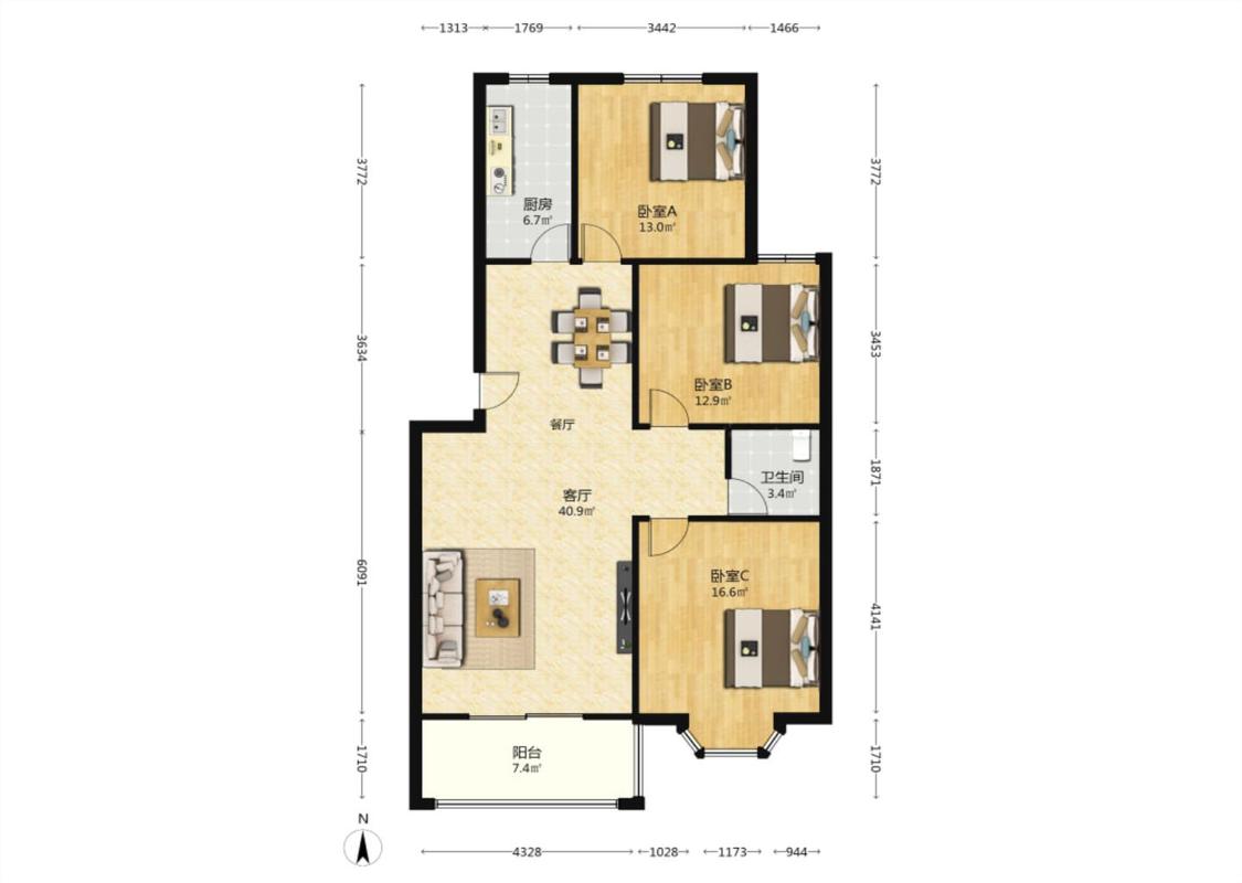3室2厅 惠民馨苑