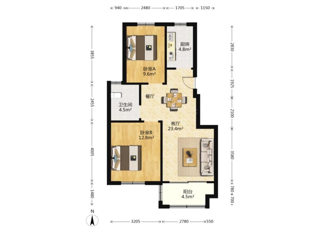 2室1厅 祥麟铭苑