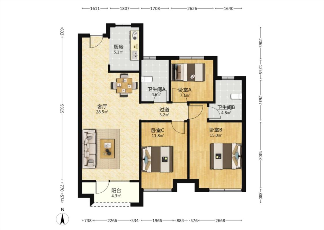 3室2厅