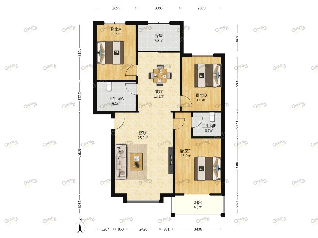 3室2厅