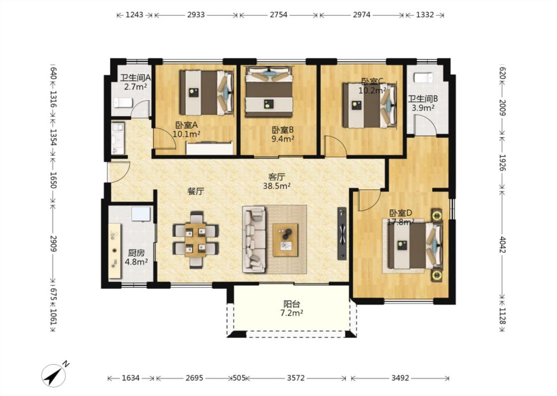4室2厅 万科魅力之城(二期)