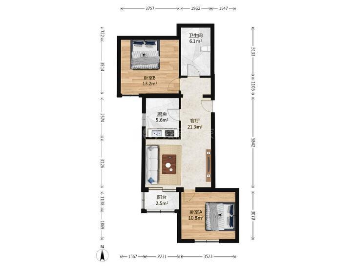 2室1厅 管庄西里