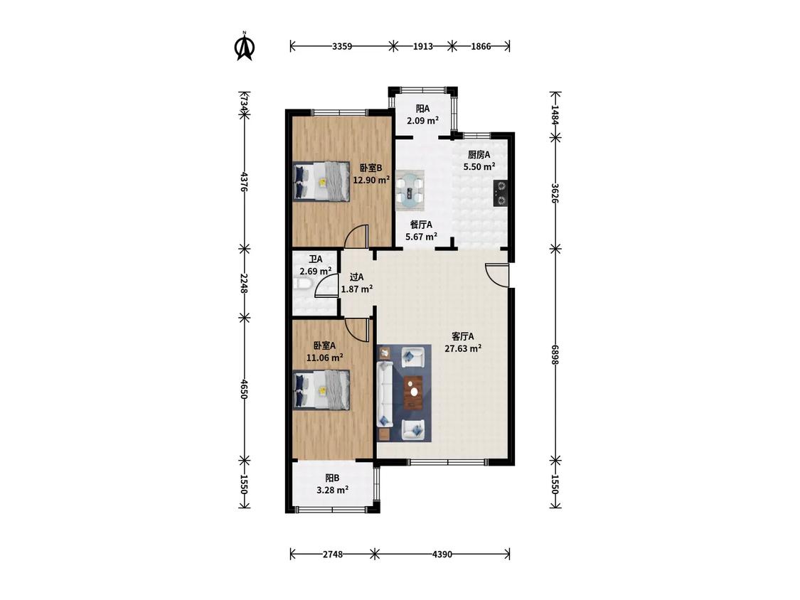 2室2厅