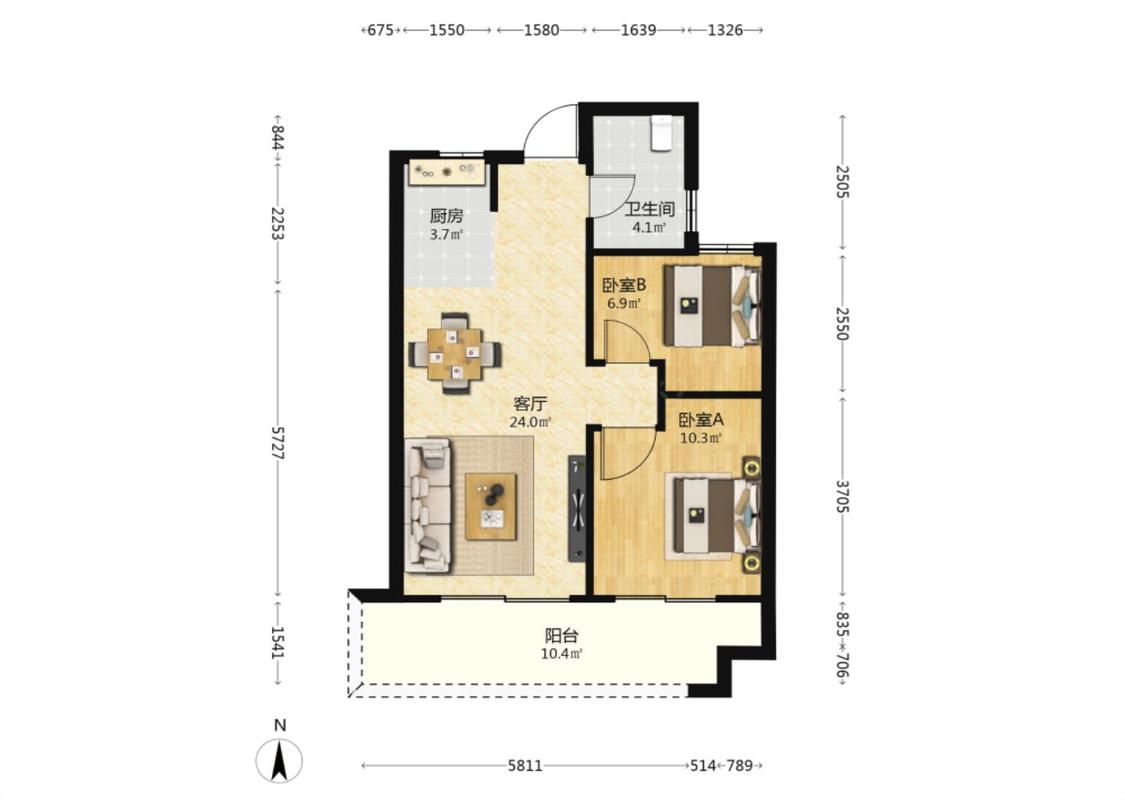 2室1厅 融创海映兰屿二期