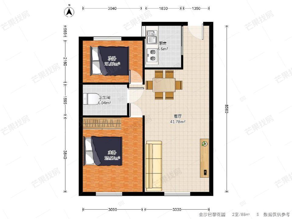 2室1厅 金沙巴黎花园