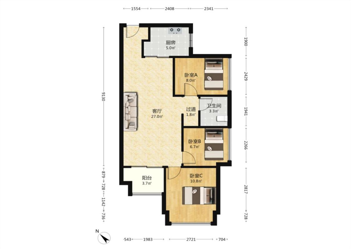 3室1厅 万科公园里