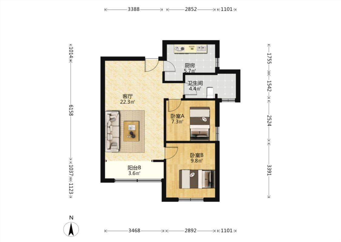 2室1厅 中民幸福里