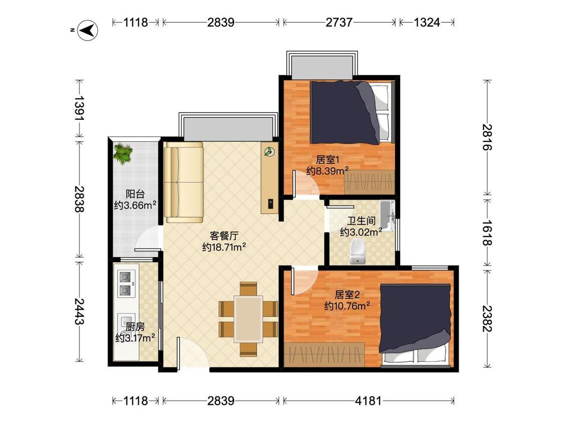 2室2厅