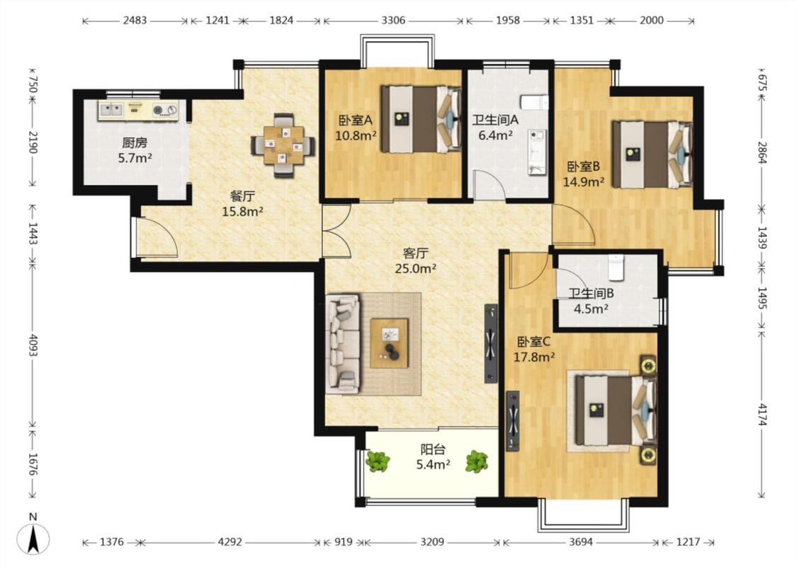 3室2厅