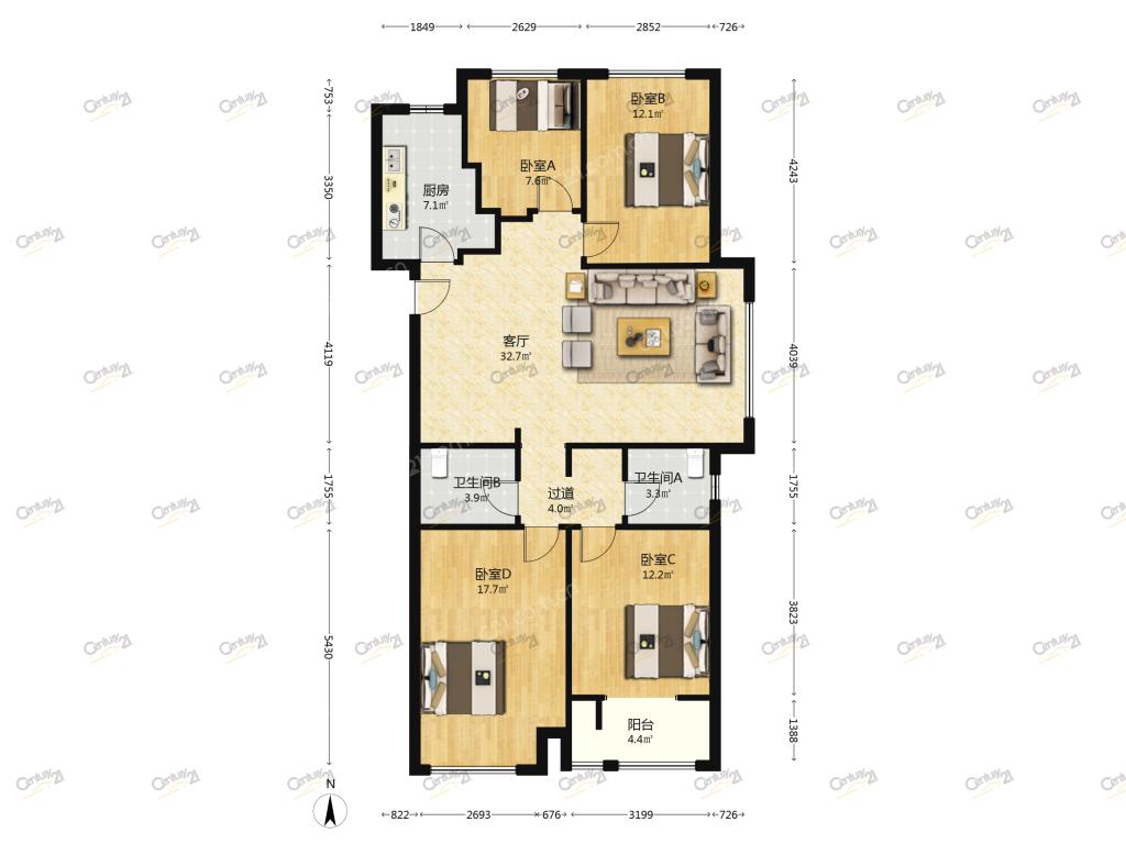 4室2厅 朗悦公园道1号玺园