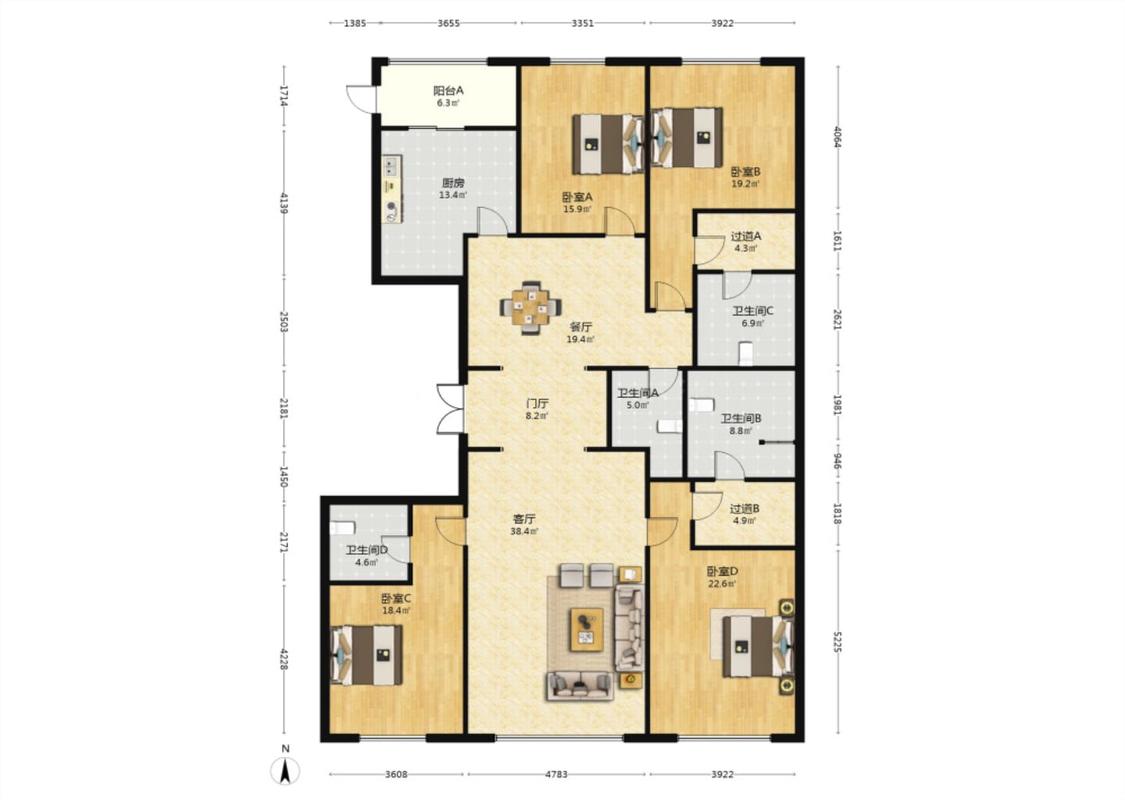 4室2厅 万达公馆
