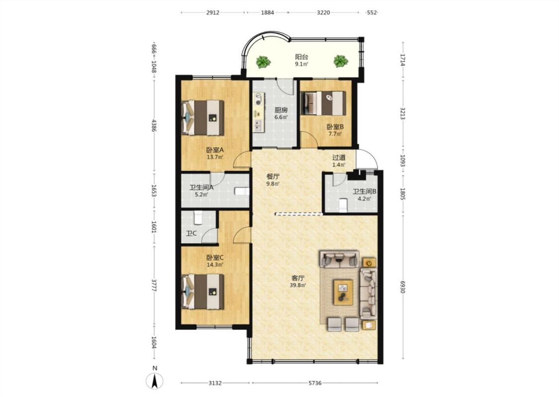 3室2厅