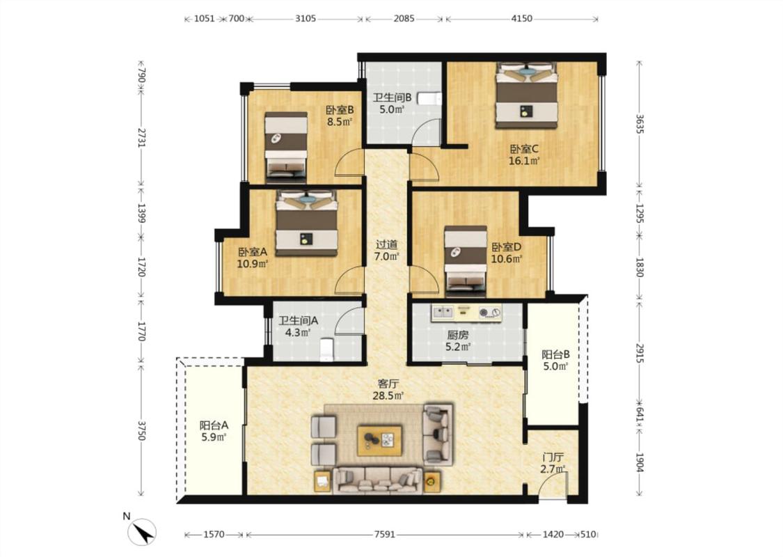 4室2厅 中粮祥云里