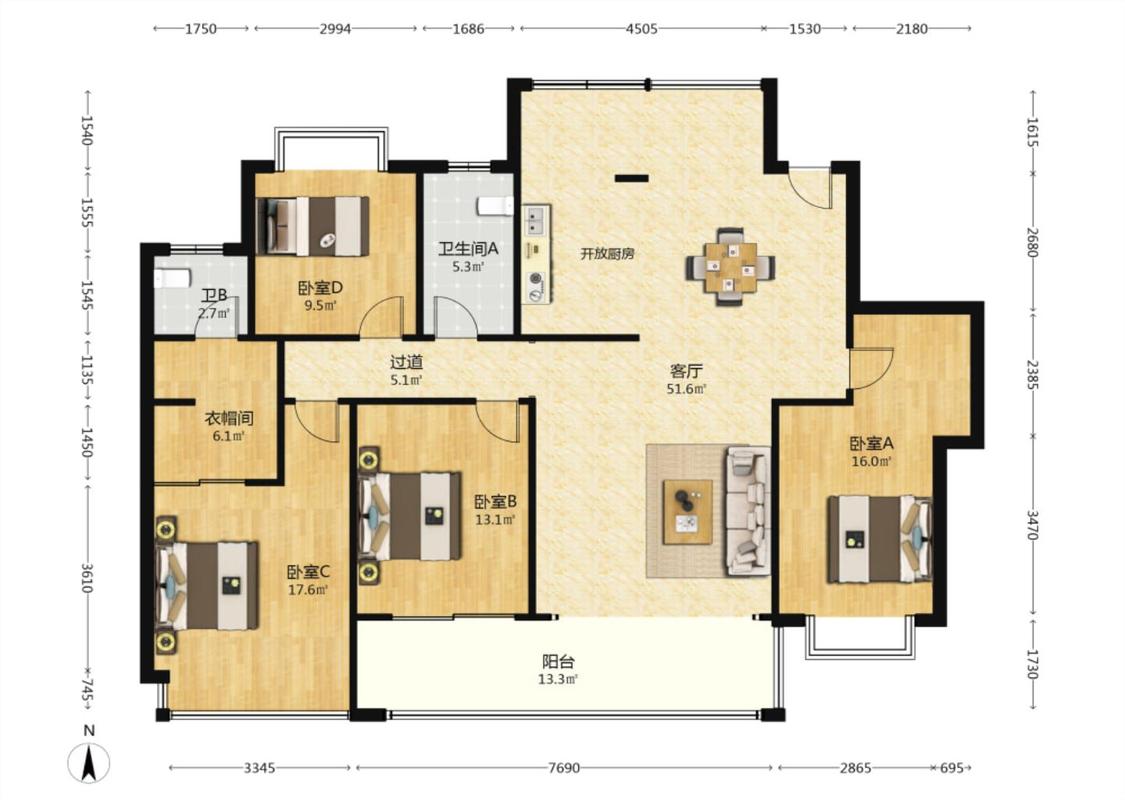 4室1厅 经世龙城