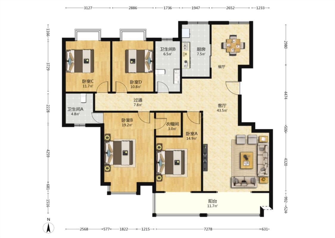 4室2厅 铁建水岸雅苑