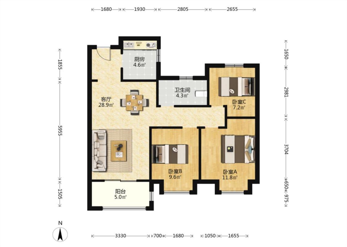 3室2厅 融创时代宜城