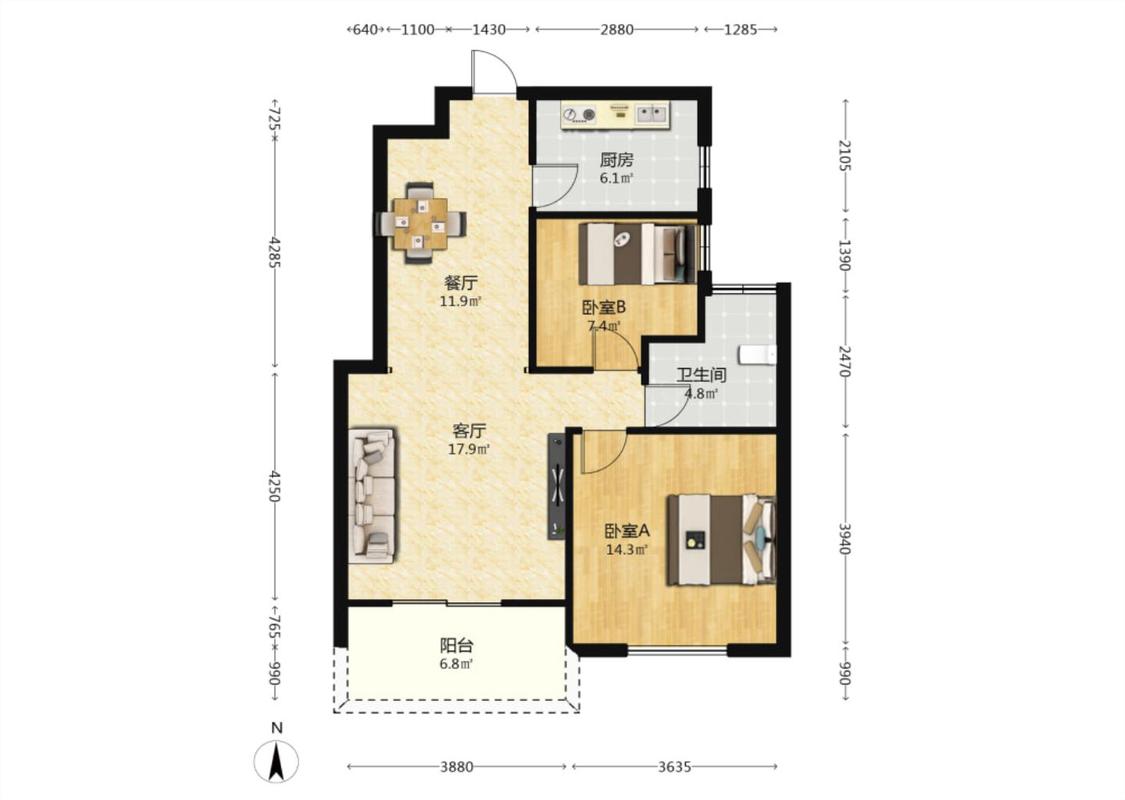 2室1厅 金满华府