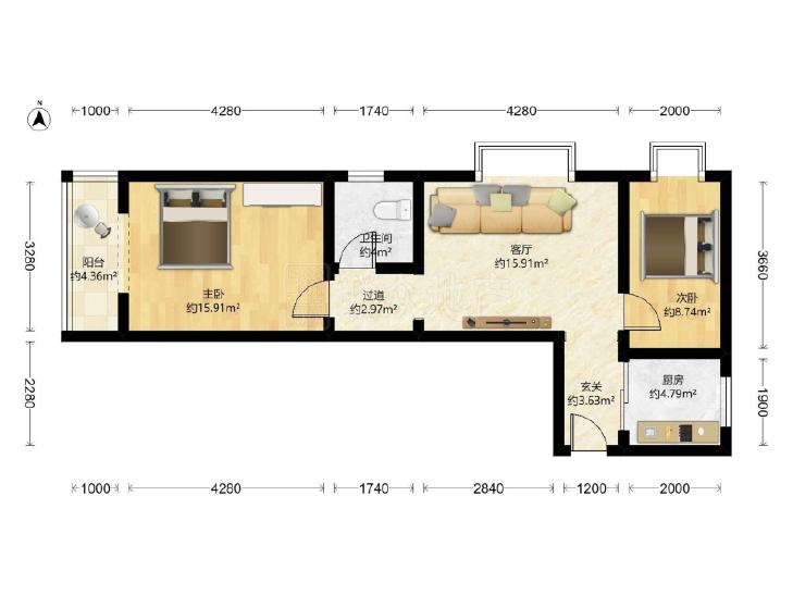 2室1厅 玺萌丽苑