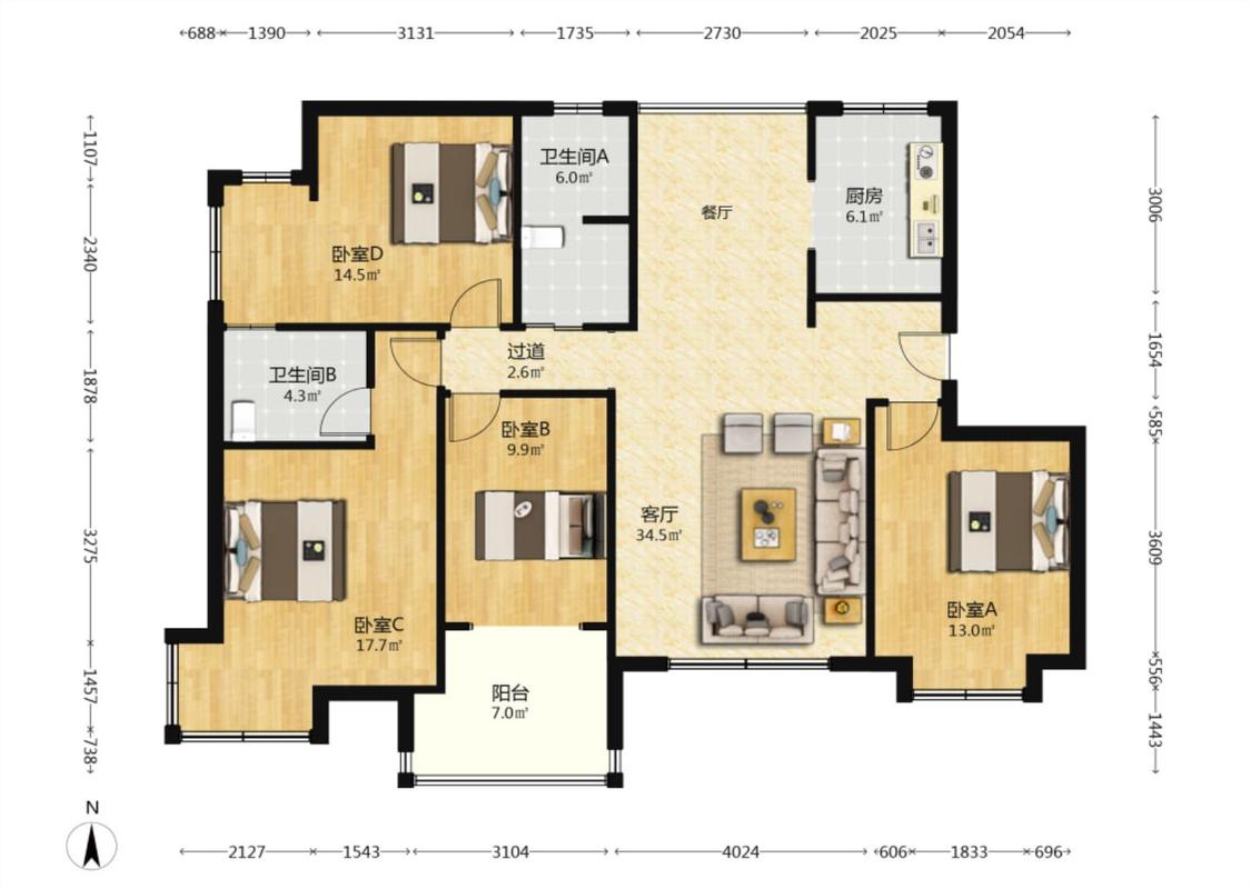 4室2厅 国基城邦
