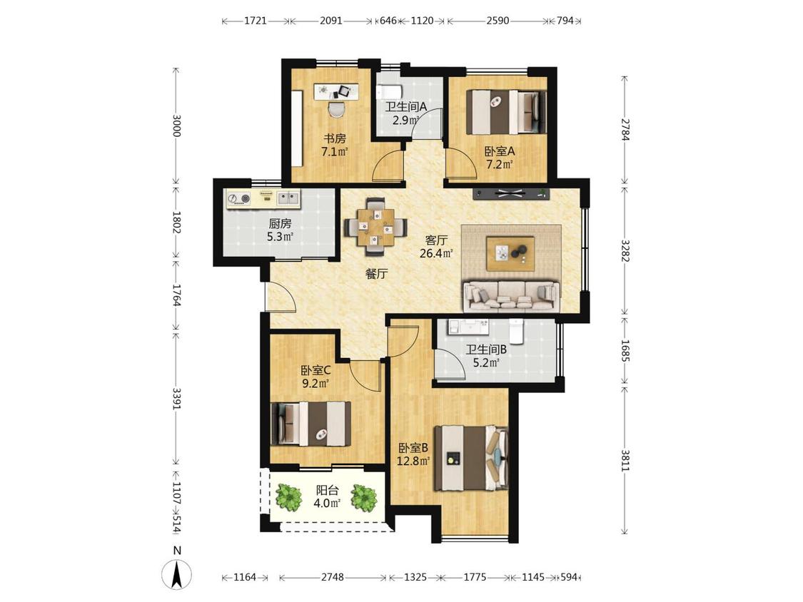 4室1厅 保利和光城悦