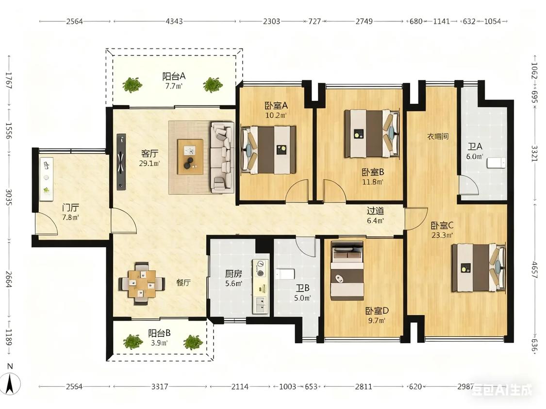 4室2厅 越秀天悦星院