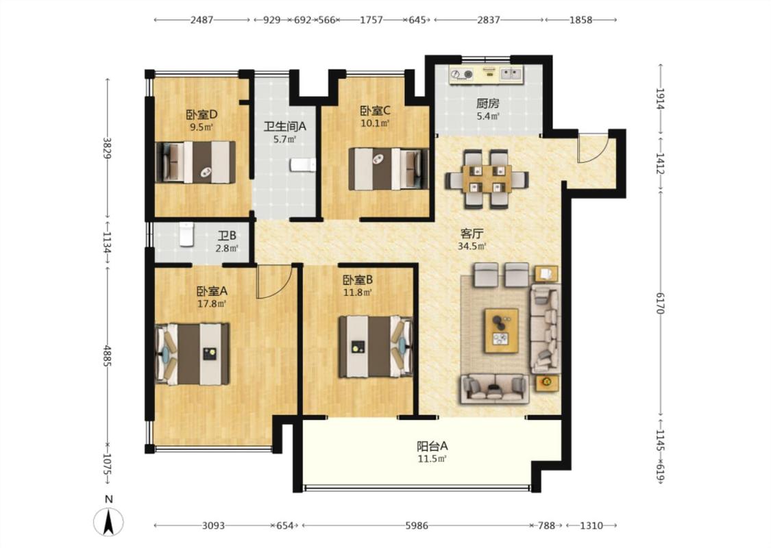 4室2厅 皖新国玺