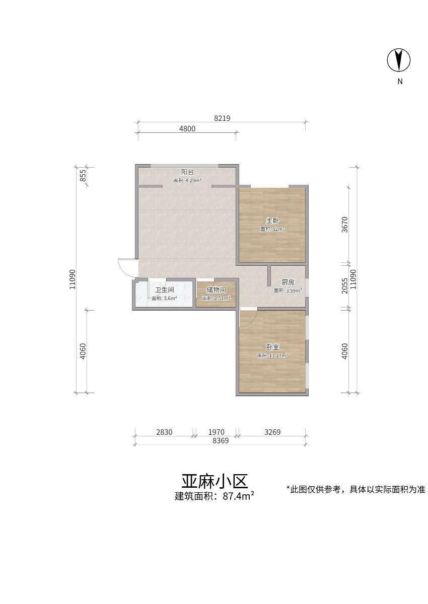 2室1厅 亚麻小区