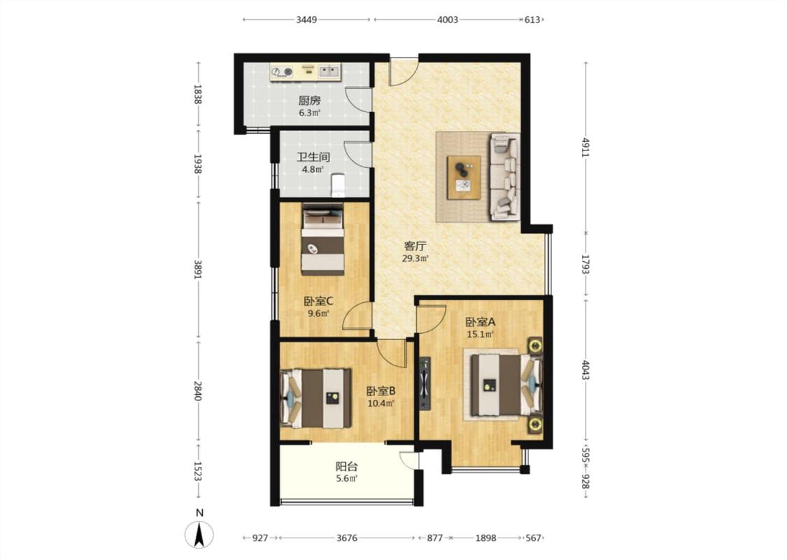 3室1厅 中国铁建青秀城