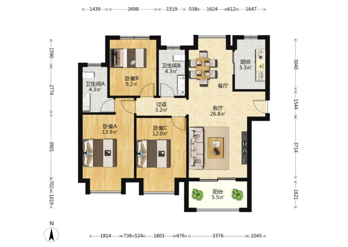 3室2厅
