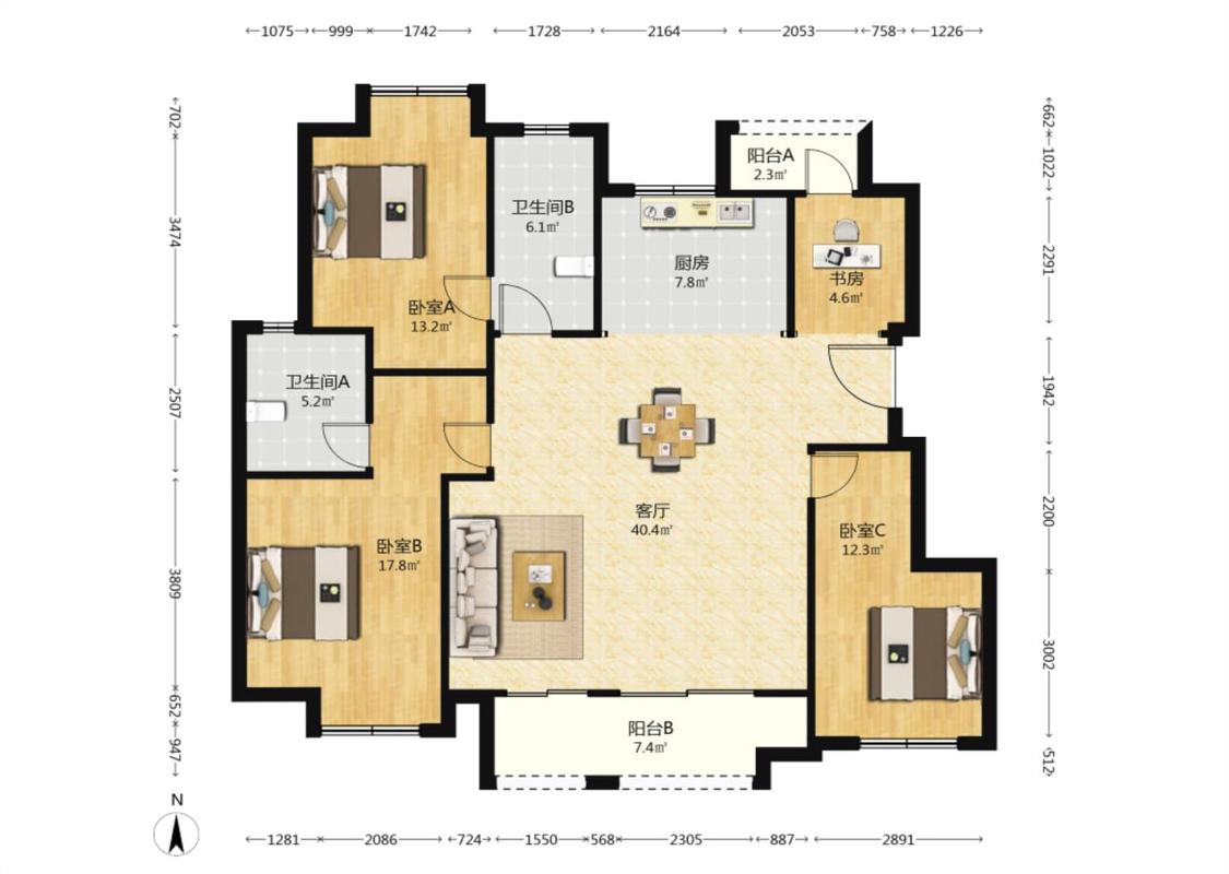 4室2厅 红豆美墅公园里