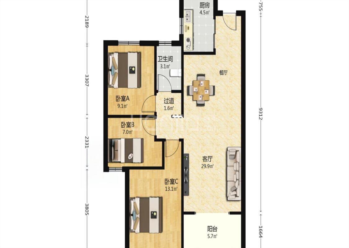 3室1厅 华洲城