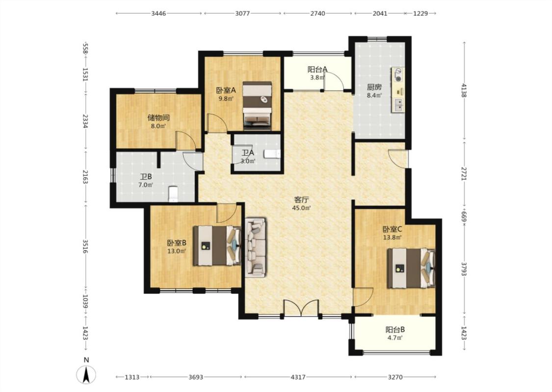 3室2厅 南郡香醍雅诺