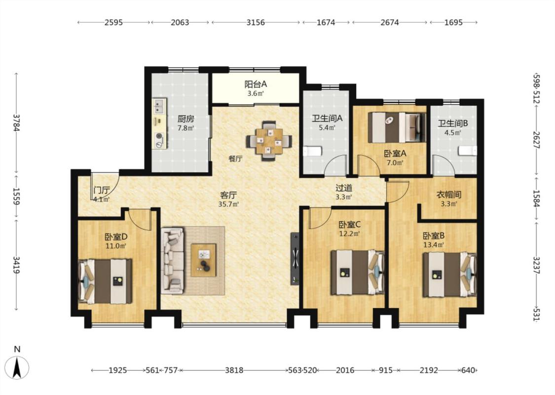 4室2厅 融创时代奥城DK3