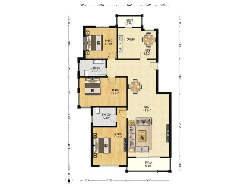 3室2厅 碧佛林山庄