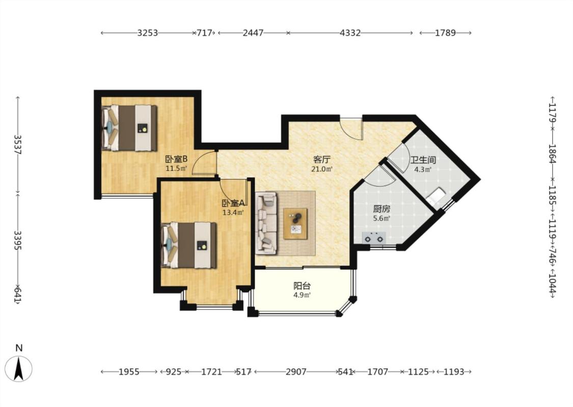 2室2厅 恒大帝景