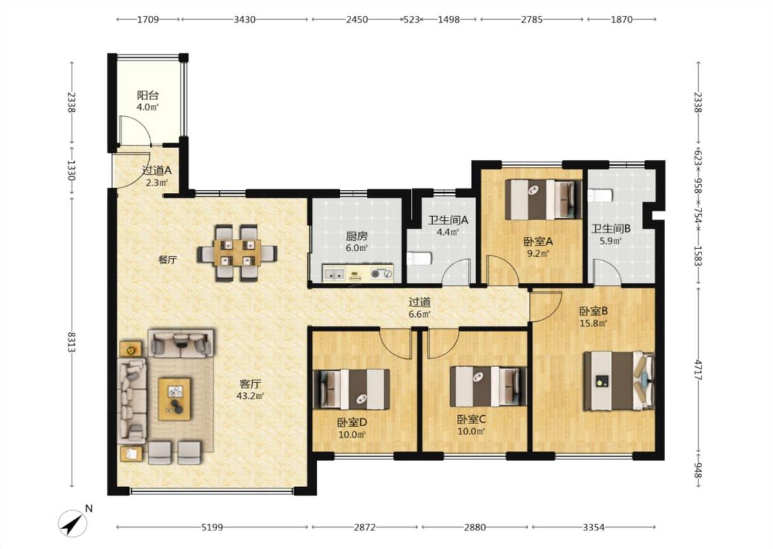 4室2厅 中海汇德里
