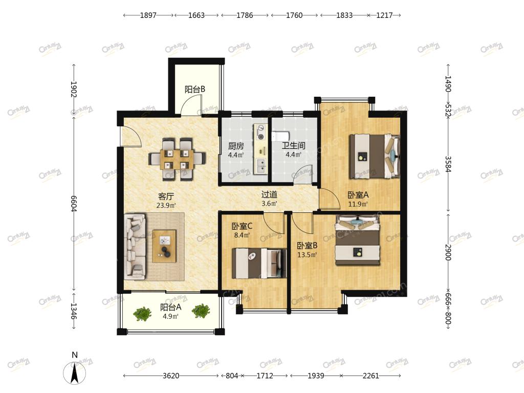3室1厅 五月花花园